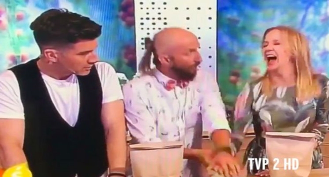 A apresentadora polonesa participou de um truque de mágica, mas a demonstração não saiu como planejado. Ao lado do seu colega de TV, os apresentadores receberam o mágico ilusionista que foi semi- finalista do Got Talent Polonês que executaria um truque de mágica estilo roleta russa.